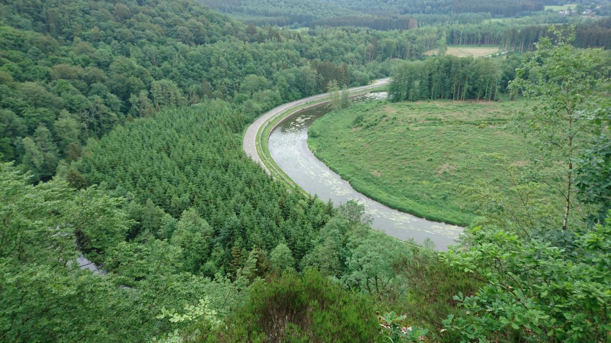 Je traverse Bouillon, et là premier petit couac, je loupe une flèche dans un champ, je me retrouve le long d’une cloture électrique et des barbelés et je me fais choquer plusieurs fois. Je reviens sur mes pas par la route et repasse la passerelle de Grimonty pour retomber sur la trace. Encore heureux que j’ai la trace GPS :-)